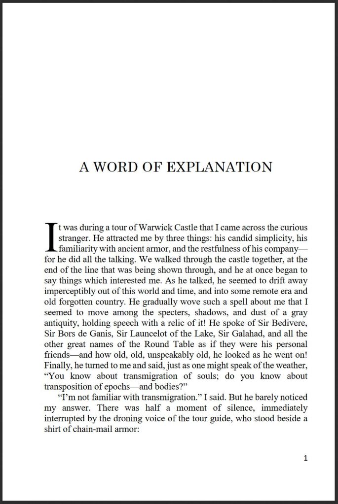 The text required a heavy copyedit as it was written for a 19th century audience and contained a lot of Middle English prose. While this style may be charming for literary academics, the lumbering text could be a chore for modern readers to consume. My challenge was to maintain the wit and charm of Twain’s voice while revising the text to comply with 21st century grammar practices. With this mindset, I made revisions to the first 30 pages of text within Microsoft Word. Enclosed is the first page of my edits, which provide a great example of my editorial style within the genre of fiction and are also included in my editing portfolio document.